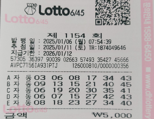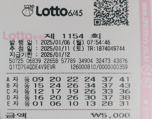 안녕하세요! 오늘은 로또 1154회 자동 월요일 용지를 여러분께 공유하고자 합니다. 매주 많은 분들이 로또를 통해 꿈과 희망을 키워가고 계시며, 특히 자동으로 선택된 번호가 때때로 놀라운 행운을 가져다주기도 합니다.